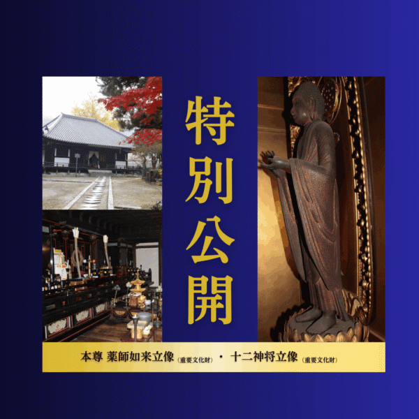 つづいて、右側から回り込むと、公開されている薬師如来立像と日光菩薩立像・月光菩薩立像の左側面を見ることができます。正面からは見られませんが、横に大きな写真が置いてあって、正面からだとこんなお姿なのだと分かるようになっています。シュッとした感じの優しいお顔でした。ホームページによると「子授け、授乳、安産にご利益がある」ことで有名な仏様のようです。