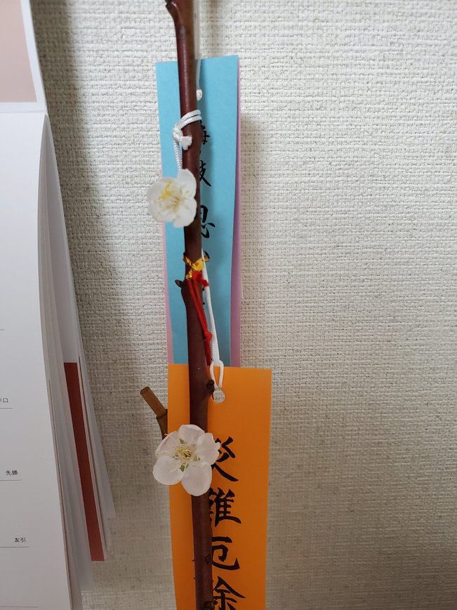「思いのまま」という梅の枝です。我が家では子どもたちが受験の年にはいつも購入しています。(写真は今年のものではありません。)こちらも北野天満宮の境内で育った梅です。合格祈願だけでなく、厄除祈願・災難除祈願として、古くより信仰されています。
